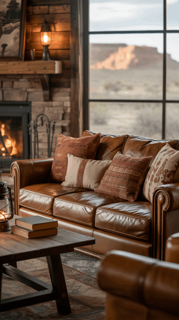 When furnishing a cowboy living room, think durable, grounded, and welcoming. Your furniture should invite people to sit down and stay awhile, all while nodding to the rustic heritage of the American West. Prioritize comfort, but don’t sacrifice style.
