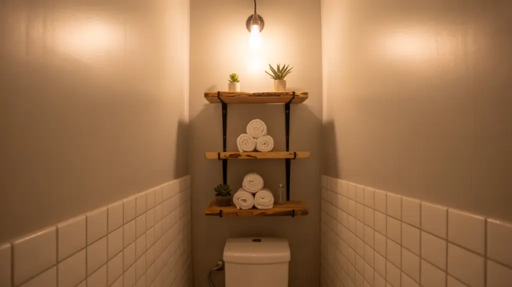 In a small bathroom, walls are your best friends. Vertical storage not only frees up floor space but also draws the eye upward, making the room feel larger. Wall-mounted solutions like open shelves, floating cabinets, and hanging baskets offer both style and storage.