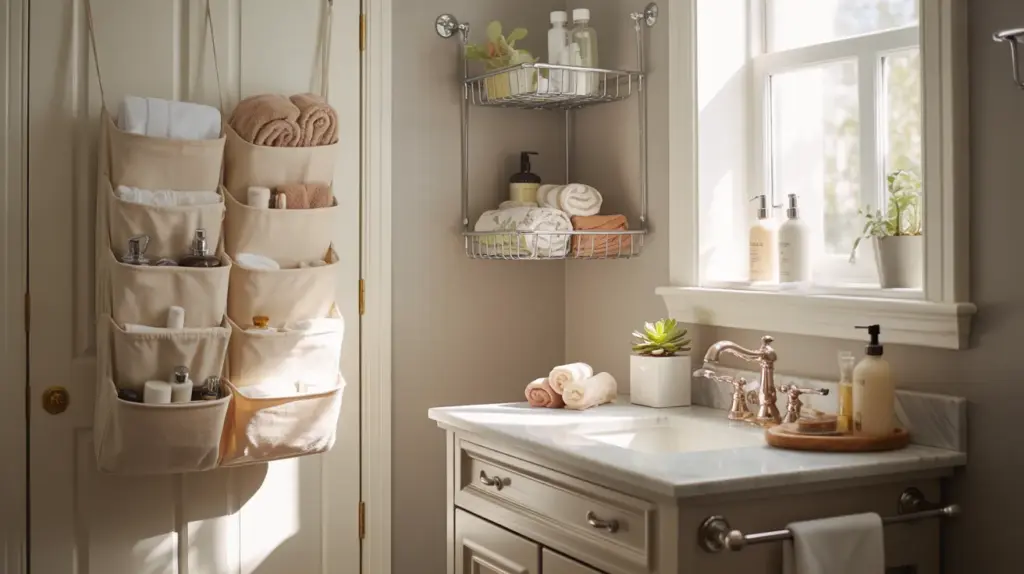 When square footage is tight, it’s important to think beyond traditional storage zones. The back of your bathroom door and unused corners can become prime real estate for clever organization solutions.